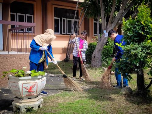 2. กิจกรรมทำความสะอาดตัดหญ้า บริเวณอาคารอำนวยการ และรอบๆ อาคารฝึกอบรมและห้องอาหารนนทรีย์