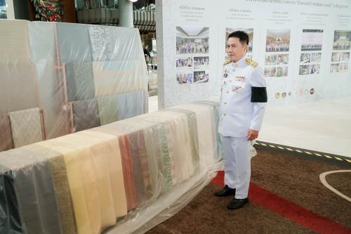 เมื่อเสด็จถึง ทรงพระดำเนินไปทอดพระเนตรนิทรรศการการประกวดผ้าลายพระราชทาน “ผ้าลายสิริราชพัสตราภรณ์” และงานหัตถกรรม แล้วจึงทรงพระดำเนินไปประทับยืนรำลึกในพระมหากรุณาธิคุณ สมเด็จพระนางเจ้าสิริกิติ์ พระบรมราชินีนาถ พระบรมราชชนนีพันปีหลวง แล้วจึงประทับที่โต๊ะทรงงาน เพื่อทรงตัดสินลายผ้าพระราชทานและงานหัตถกรรมร่วมกับคณะกรรมการจากกรมการพัฒนาชุมชน กระทรวงมหาดไทย และคณะกรรมการกิตติมศักดิ์